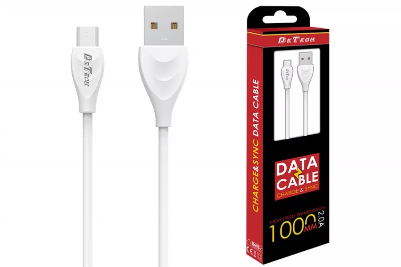 Описание на Кабел USB 2.0 A to 5pin micro-B 1.0m (DeTech DE-24M) Flat White Charge 2A