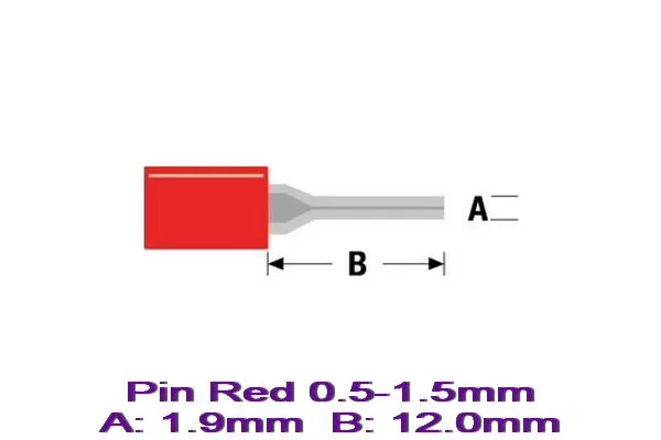 Конектор кабелна обувка Pin Red 0.5-1.5mm A:1.9mm B:12.0mm Оп.10бр