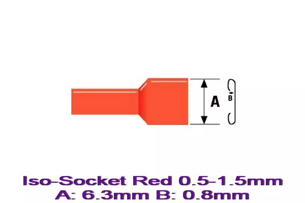 Конектор кабелна обувка Iso-Socket Red 0.5-1.5mm A:6.3 B:0.8mm Оп.10бр
